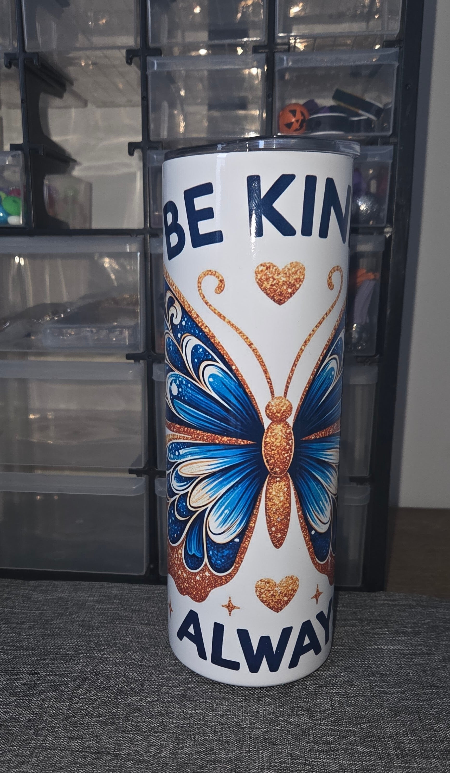 The always be kind tumblers are 20oz tumblers. They come with 2 straws a straw cleaner and a straw topper